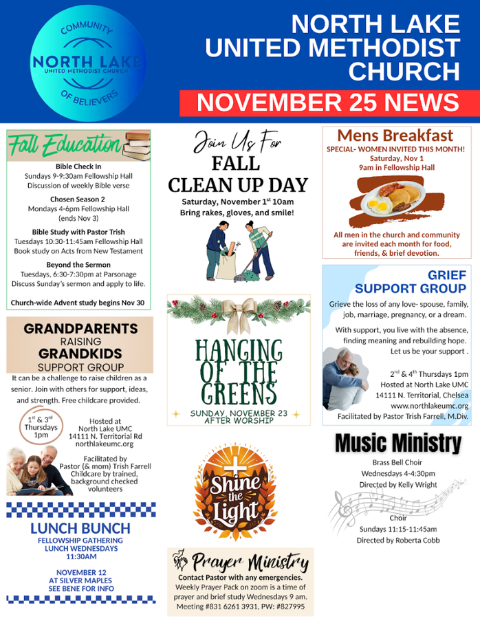 North Lake United Methodist Church provides a center in the community where people can gather to live out the example of Jesus Christ. Our church has been a light of hope since its founding in 1836, guiding generations to a deeper connection with God and serving as a pillar of spiritual strength.