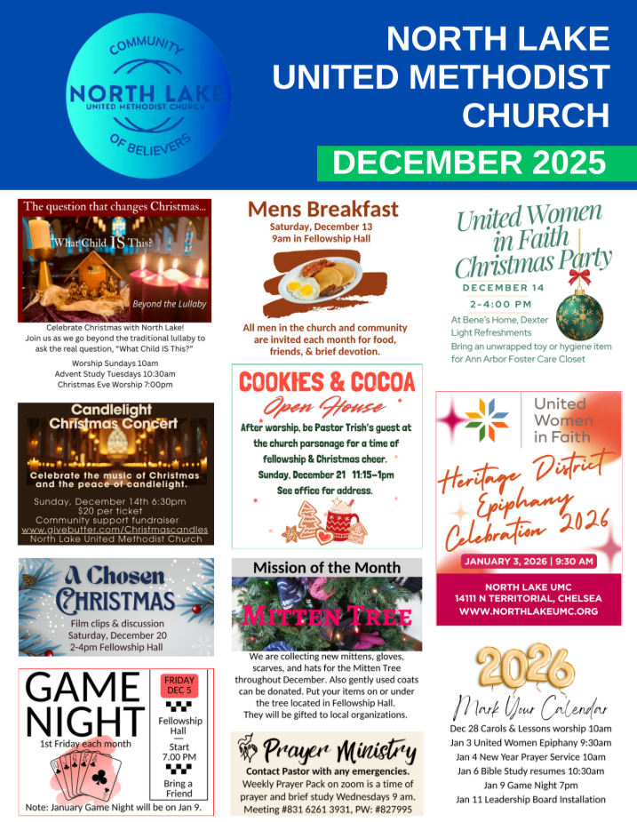 North Lake United Methodist Church provides a center in the community where people can gather to live out the example of Jesus Christ. Our church has been a light of hope since its founding in 1836, guiding generations to a deeper connection with God and serving as a pillar of spiritual strength.